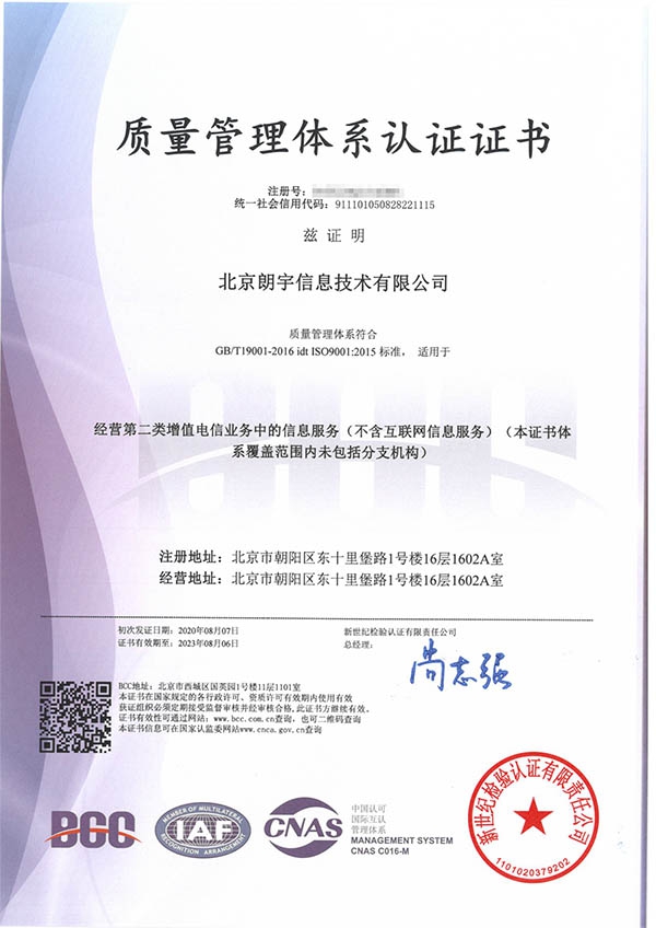 质量管理体系认证证书