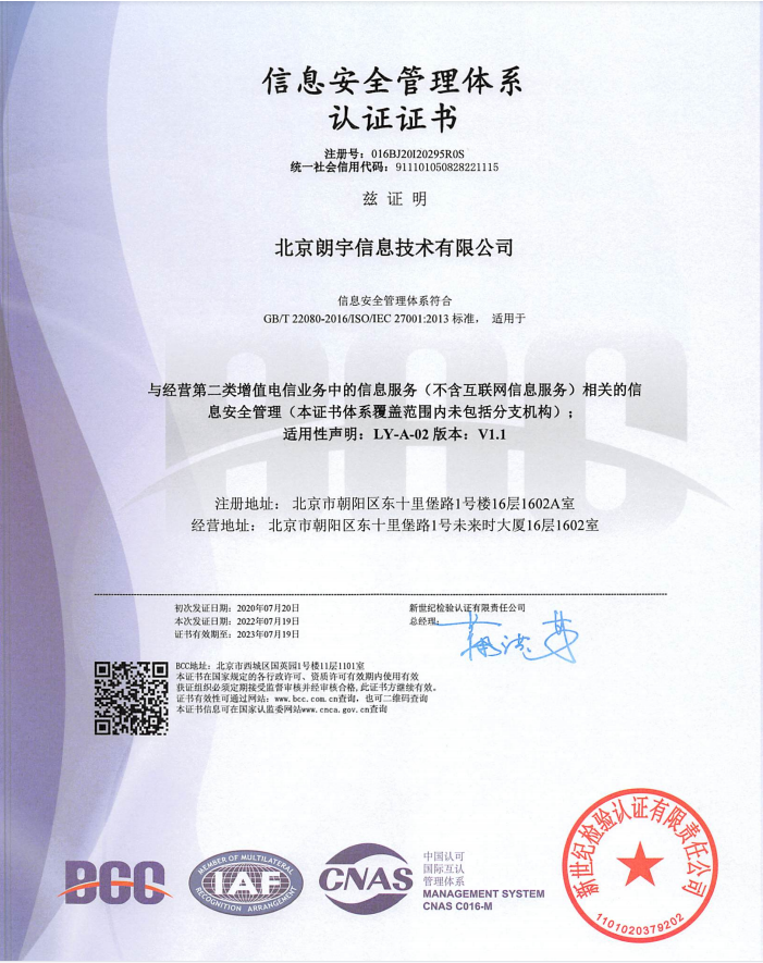 信息安全管理体系认证证书