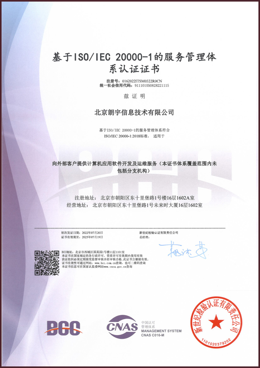 服务管理体系认证证书